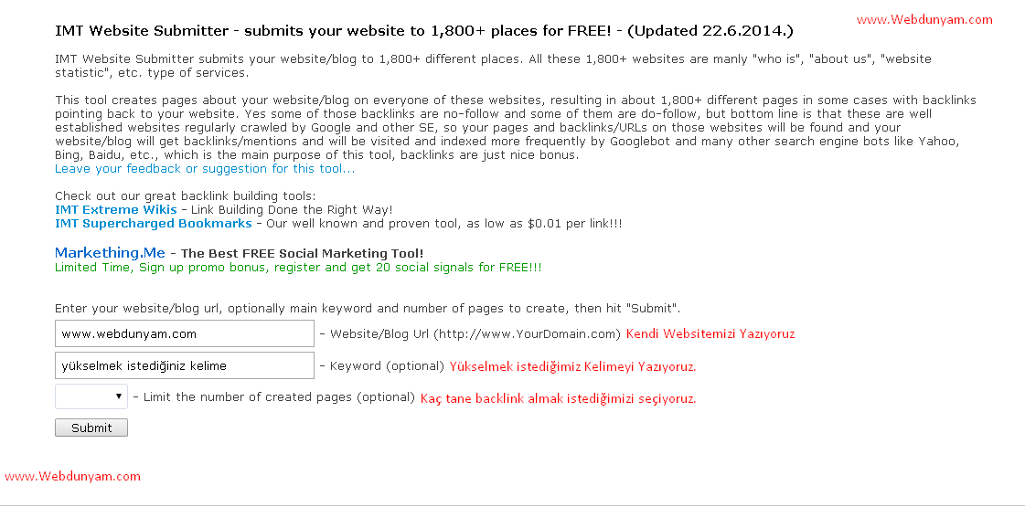Not : Aynı Siteyi ayda 1kereden fazla yapmayın, Aksi taktirde google amca tarafından engellenirsiniz.